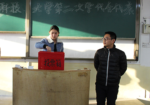 会上,刘绪峰首先对山东科技大学第二次学生代表大会进行介绍,他提到,召开第二次学生代表大会是全校学生政治生活中的一件大事,也是学团组织的一项重要工作。希望同学们在选举过程中仔细斟酌、酝酿,选举出优秀的学生代表,更好地促进学校发展及学团组织建设。随后,大会进行第一项,讨论并通过《山东科技大学第二次学生代表大会代表选举办法(草案)》,经过参会人员讨论,草案得到一致同意。大会进行第二项,通过总监票人、监票人、计票人建议名单,确定李向程为总监票人,王栋为监票人,潘光永、郑皓语为计票人。随后,李向程介绍候选人学习、工作、获奖等基本情况,参会人员经过慎重考虑,采取差额方式进行投票。投票结束后,监票人、计票人当众开启票箱清点选票并做统计,以得票数从高到低顺序确定正式当选的学生代表。最后,刘绪峰宣布选举结果,金云灿等9名代表候选人正式当选山东科技大学第二次学生代表大会第九代表团(泰安校区代表团)代表。(文:邢凯 图:于慧敏)