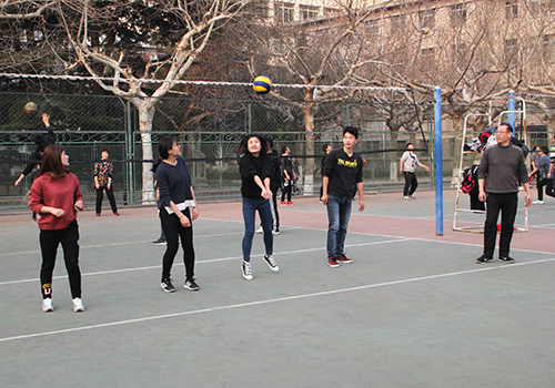 班级排球赛是增强班级间交流,加强团队合作,提高同学们综合素质的良好平台。在排球场上,同学们从基础练起:垫球、传球以及发球等等,并相互配合学习团队战术,进而提高团队默契度。辅导员在场进行悉心指导,与同学们相互切磋交流,多次强调赛前的准备事项、比赛过程中的细节问题。同学们积极备战,努力提高技术能力,力求以最佳的状态和最高的水平迎接即将到来的比赛,为班级争光。各班训练到天黑才散去,每个人都大汗淋漓,料峭春寒湮没在排球场上,融化在同学们的呐喊中。(文:李晓禾 图:彭衍嵩)