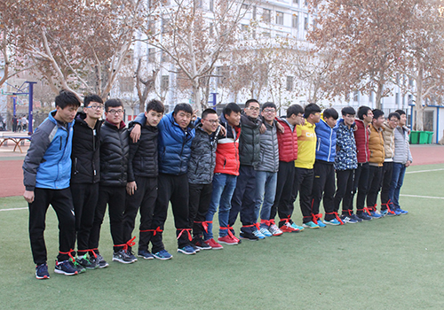 训练中,由于缺乏经验,同学们经常摔倒,但在其他同学们的帮助下,他们毫不气馁,坚持练习,口号逐渐整齐,步伐渐趋一致。在“蜻蜓点水”的训练中,要求后一名同学将左手放在前一名同学的肩上,并用右手提着前一名同学的右脚。刚开始,同学们跳的快慢不一,导致队伍时常脱节。大家细心寻找问题所在,并调整战略。经过训练,同学们配合更加默契,同时,班级的气氛也变的更加和谐。在训练中,同学们没有因一点小问题放弃,而是迎难而上克服困难。来自土木工程二班的李广宇说:“这几天的训练,不仅是为了比赛,也是为了增强我们的班级凝聚力,不管比赛结果如何,大家共同努力的过程就让我们收获了许多。”(文:逄颜恺 图:李震 彭衍嵩)