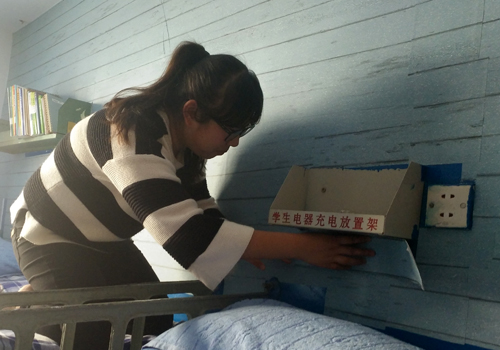 装饰开始前,大家认真设计宿舍的每一处位置,力求把最佳的装饰效果展现出来,打造一个温馨的小窝。装饰阶段,同学们买来各种贴纸、拉花将宿舍装扮一新,有的同学挥笔写下勉励字句贴于墙上,以此来激励自己;还有的同学将大学生活的剪影通过照片的形式展示出来,留作纪念。大家想法多样,喜庆、温馨、儒雅……装饰风格各不相同。来自造价16-1仇慧超说:“在装饰过程中,我们‘一家人’共同努力,将我们的宿舍装扮得更加漂亮的同时,还增进了舍友之间的友谊。”