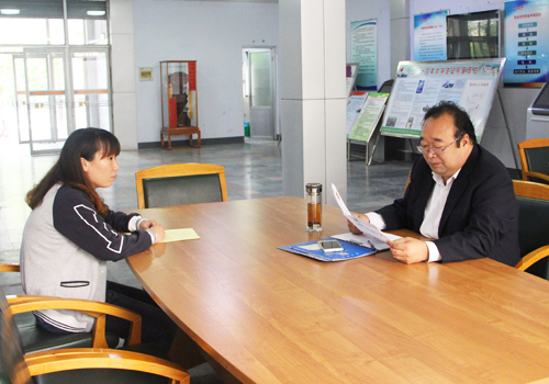 招聘会上,高阳建设公司办公室主任王秀霞等与毕业生们面对面进行沟通。她跟同学们深入介绍公司现状、工作方针、管理模式与理念,并就同学们关心的薪酬、员工福利及发展前景等方面进行详述。随后,同学们就自己的疑惑向招聘人员进行咨询,在交流过程中,不少同学表达了为公司建功立业的渴望。最后,共有7人递交了求职简历。(文:李晓禾 图:刘晓凤 李晓禾)