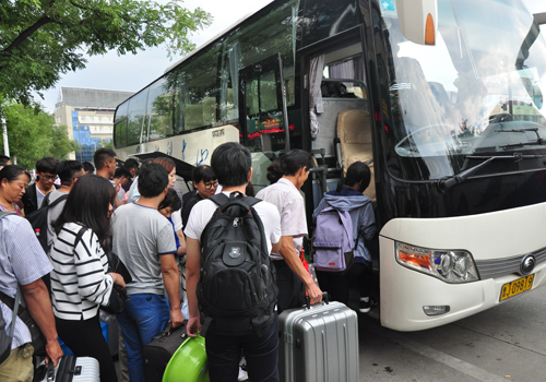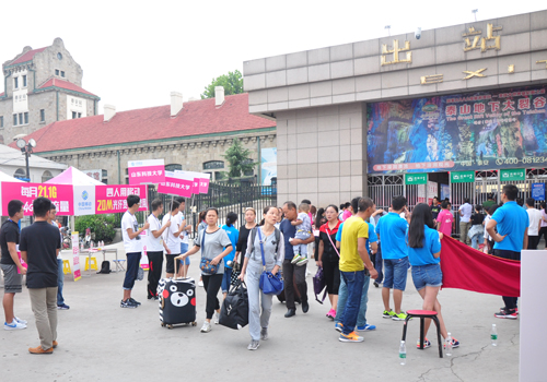 在火车站,着统一服装的志愿者俨然成为了一道靓丽的风景线。由于到达火车站的新生及家长较多,人流量较大,给迎新工作加大了难度。但志愿者们还是顶住压力,克服困难,耐心地完成工作。从火车站到上车,从跟车到指定校区,资土系学生干部用自己的方式诠释了奉献精神。当新生听循迎新广播的指引,来到文化广场办理各种手续时,一旁守候着的志愿者们,便主动上前帮忙:或是拿行李,或是提供各方面的信息。同样的问题,他们在这一天内要回答无数次,但是他们并不因此而感到厌倦,反而更加细致耐心的为学弟学妹们解答每一个问题。在上车的途中,志愿者们一路陪伴着新生,并时不时提醒着,“拿好自己的行李,慢慢走。”车子到了,一部分志愿者们帮新生提行李从后门上车,另一部分人安排新生们整齐有序地从前门上车,前往指定校区。“虽然要起得早,还要干体力活儿,但是只要能帮得上学弟学妹,我就很开心了,因为曾经,也有人这么热情耐心地帮助过我,”一位志愿者这样说道。