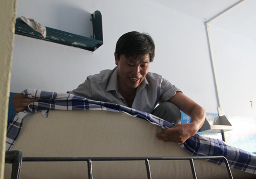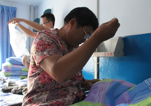 填报资料这么重要的事情总有点不放心啊,我得在一边看看有什么能帮忙的。 给他把床铺收拾的舒服点,我也放心。 终于把表填完了,坐在休息区歇会。 戴上眼镜做起针线活,一针一线饱含深情。 等待孩子办理手续的家长:紧锁的眉头难掩浓浓的不舍与担忧。