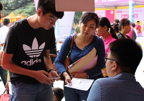 家长们仔细阅读着展板的内容,了解孩子的专业