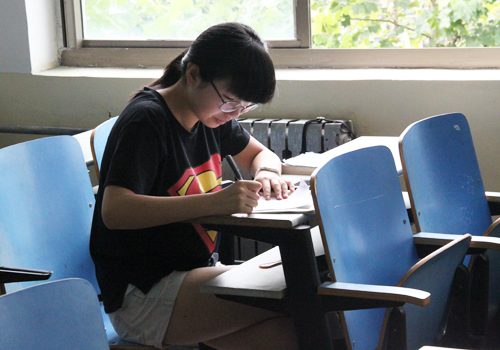 安静的教室里,高效、全神贯注的一个姑娘,自己一个人沉浸在学习中,忘记了夏天的炎热。