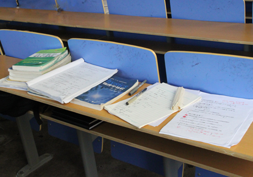 书的主人去吃饭了,它们安静的躺在自习室,静等着主人回来。