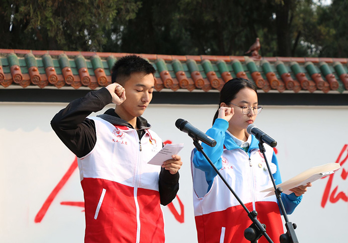 本次活动在济宁烈士陵园烈士纪念墙前进行,首先,公益小天使与高中生代表一同向烈士墓碑敬献花篮。随后,全体成员肃立默哀一分钟,以表达对烈士的哀思。默哀完毕后,由高中生代表诵读祭文并领读《少年中国说》 ,孙玉先带领全体人员重温共青团员入团誓词,表达了对革命烈士的深切缅怀。全体参与学生参观了烈士纪念馆,瞻仰烈士陵墓,并敬献鲜花。本次活动在齐唱国歌中落下帷幕。活动受到了学生家长及社会的一致认可与好评。