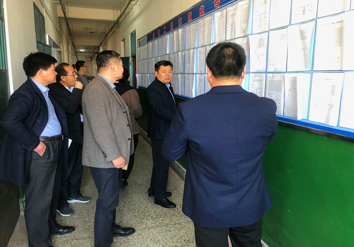贾长响一行来到系团总支办公室看望了系团总支辅导员,并分别在二号楼走廊“机电工程系就业专栏”和团总支办公室“班团联席会议记录墙”前驻足查看,了解工作开展情况。