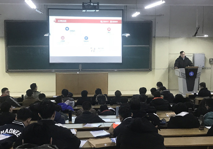 张经理分别从公司业务涵盖、薪资及福利待遇等方面作了详细的介绍,并向与会同学分享了相关工作经验。最后,有意向的同学提交了个人简历。
