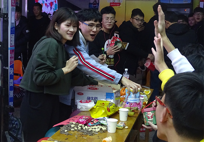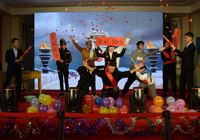 12月21日晚,机电系第十三届学生会元旦联谊晚会在岱宗餐厅一楼举行。