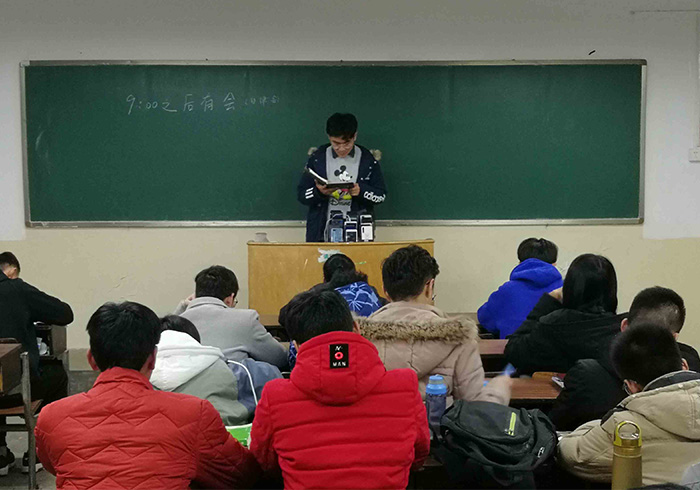 会上,刘凯歌首先与同学们讨论了本学期班级成员的总体表现情况,希望同学们向学习刻苦的同学学习。刘凯歌提醒同学们充分利用课余时间,做好期末复习,同时要提高课堂效率。他希望大家做到诚信考试,坚决摒弃考试作弊行为。刘凯歌说:“希望同学们能够延续本学期的优良习惯,提高自律性,在接下来的时间里积极备考,争取期末考试考出理想的成绩。”(文: 孙玉先 曹浩浩 图: 孙玉先)