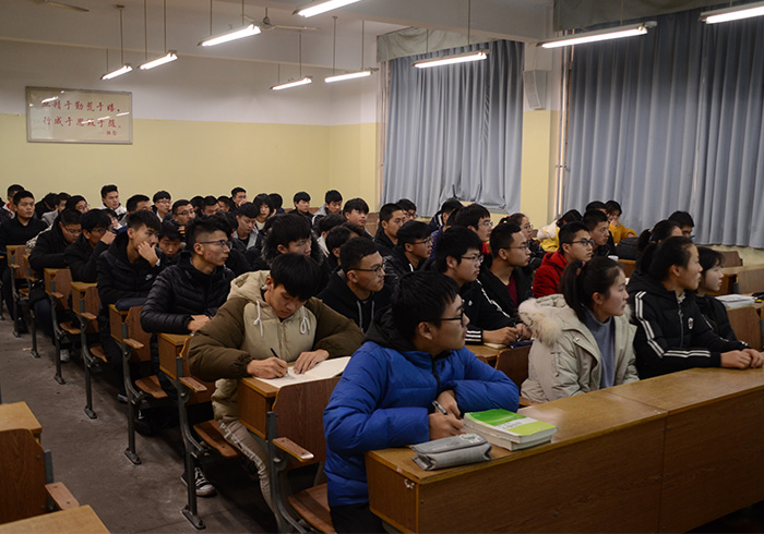 张昊从发现问题、模型的准备、模型的假设、模型的构成、模型的求解、模型的分析六方面介绍了建模的一般步骤,并说明了论文摘要的重要性。他向同学们推荐了概率模型、线性回归模型、非线性回归模型、统计模型等常用模型,并分享了SPSS、MATLAB两款常用软件。最后,张昊表示:“建模比赛的解题思路要清晰、新颖,并且建模论文要贴近于现实生活。”(文: 李峰 曹浩浩 图: 李峰)