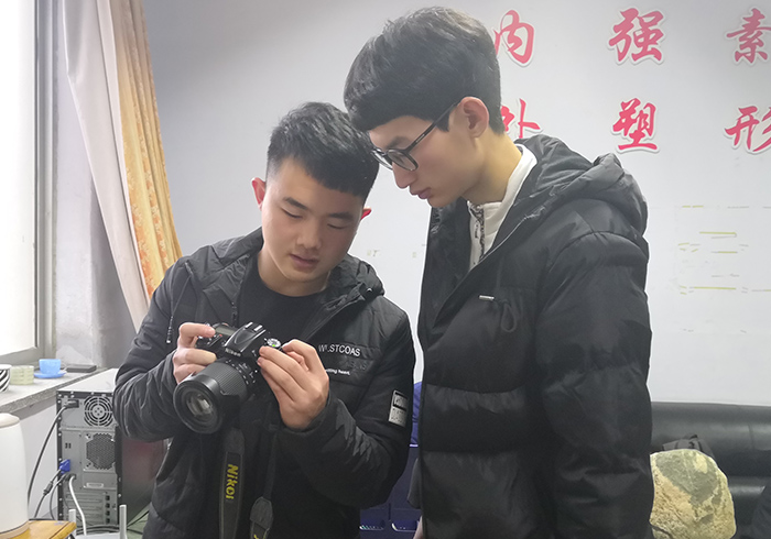 12月12日下午,机电系新闻中心办公室主任张玉贺在2#407组织干事学习摄影技术。