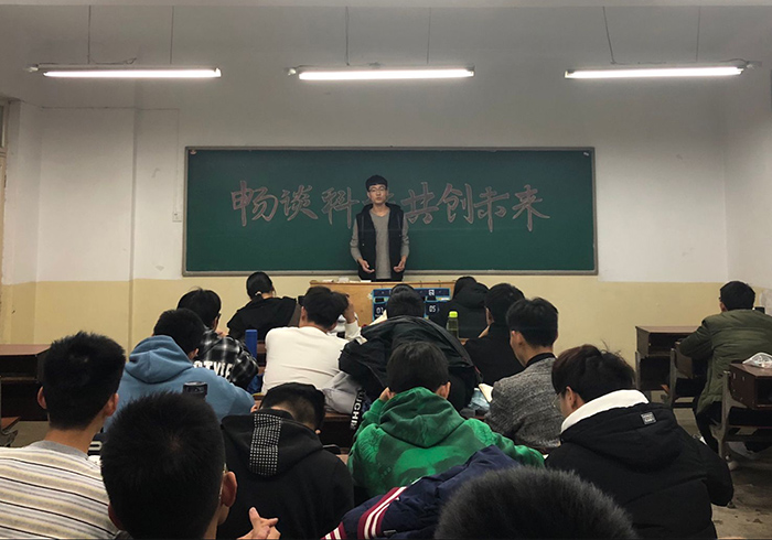 12月3日,机电系电气智能18-1在3#302召开“畅谈科技,共创未来”主题班会,科技委员李晓阳主持,全体成员参加。