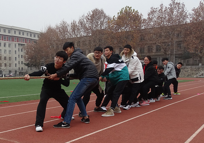 本次比赛分为夹气球、“五人六足”和拔河比赛三个环节,通过比赛,同学们了解到相互信任与合作的重要性,心往一块想,才能提高班级的凝聚力,从而发挥出更强大的力量。(文/图:周恒旭 董永辉)
