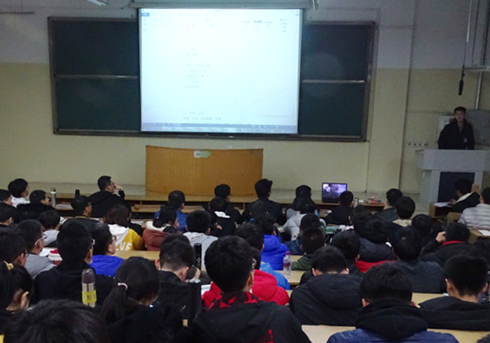 11月28日,2018级机制专业在5#206组织科技创新交流会,机制16-1王琛主持,机制16-1程宝嘉、谢石璞主讲,2018级机制专业全体学生参加。