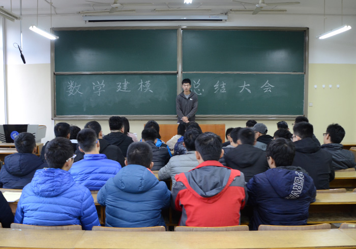 会上,田鸿宇对班级以往的参赛经历、出现的问题进行分析总结,并从“什么是数学建模”、“怎样做好数学建模”、“数学建模的相关软件和技巧”三个方面向同学们进行阐述。副班长孔令航列举了一年中重要的建模比赛,他建议同学们通过研究历年的获奖论文来分析论文构成,通过进行模拟建模来总结比赛经验和技巧。班长夏子航表示,学习数学建模,锻炼的不仅是协作能力与学习能力,更重要的是培养了创新思维与逻辑思维,使同学们更加适应社会发展的潮流。(文/图: 张旭超 苏彤)