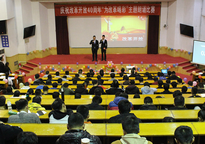 11月22日,机电学子在四号楼报告厅参加“为改革喝彩”朗诵比赛决赛。