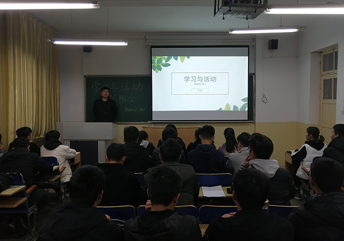 11月20日晚,自动化18-3在3#210召开“学习与活动”主题班会,宣传委员刘兴国主讲,全体同学参加。