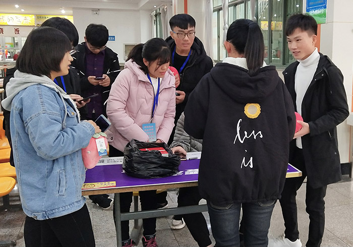 11月16日下午,机电系权益部在岱宗餐厅从参加岱宗餐厅评选的观众中抽取幸运观众发放礼品。