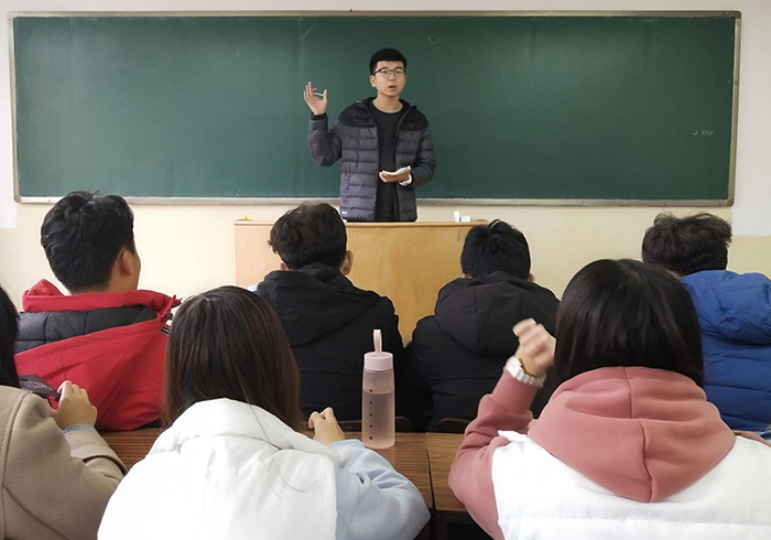 会上,程子豪针对考研态度、数学建模等大型活动、期末考试挂科问题,不能早上睡懒觉、晚自习分班级区域坐、四六级模拟考试等学风建设问题进行详细说明,解释了学风建设的目的和对当代大学生的意义。他说,作为大一新生,学风建设是搞好学习的第一步,是我们最应重视的问题。科技委员唐宝康宣布了班级科技创新小组的成立,并鼓励大家申请专利,积极参加科技创新项目。最后,副班长孟强对纪律管理和宿舍卫生方面进行说明。(文:张纯源 苏彤 图: 赵庆伟)