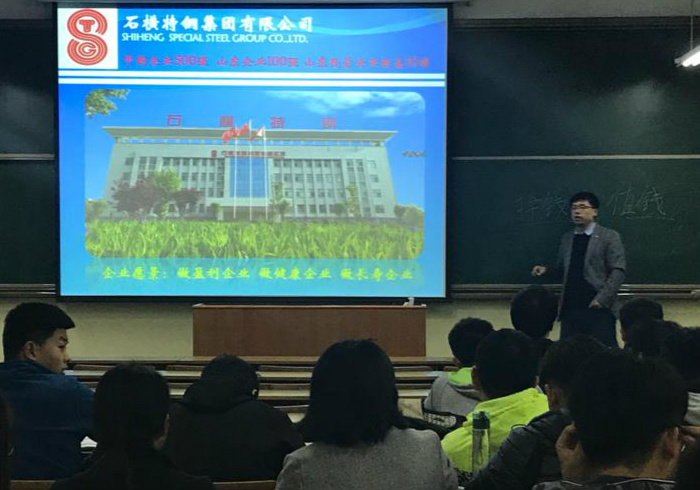 11月9日下午,石横特钢集团有限公司来机电系专场招聘,公司宣讲专员许志强等一行二人在5#104召开宣讲会,机电系40余名2019届毕业生参加。