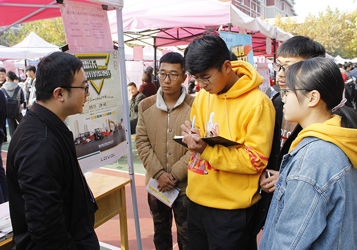 11月10日,校区2018年秋冬季供需见面会在东校操场举行,机制18-1班长刘禧龙组织班级同学参观供需见面会。