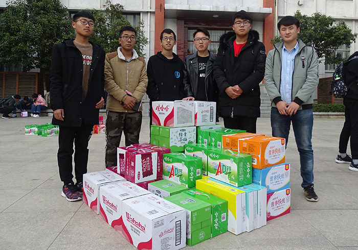 11月10日下午,娃哈哈营销大赛机电系营销队伍在文化广场接收第一批娃哈哈营销产品。