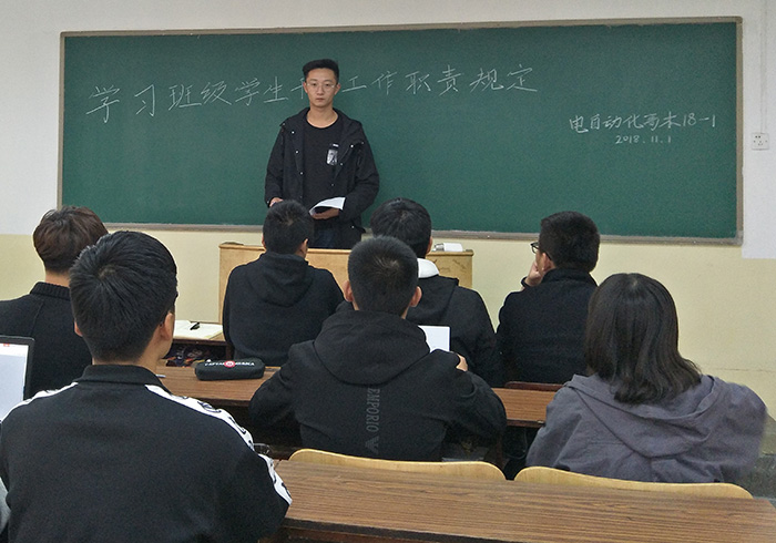 11月1日,电自动化(高本)18-1在3#312召开“严律己,树班风”班委会,班长王安泰主持。