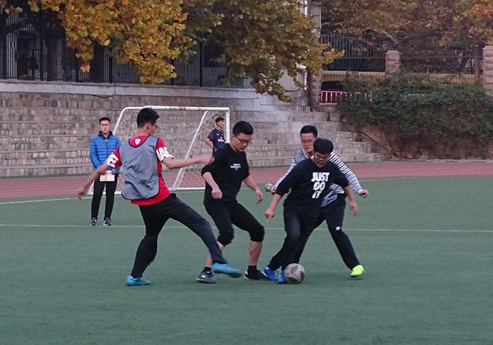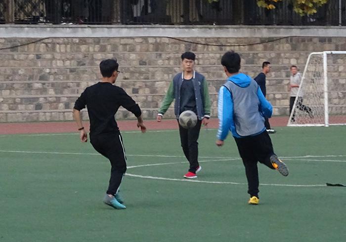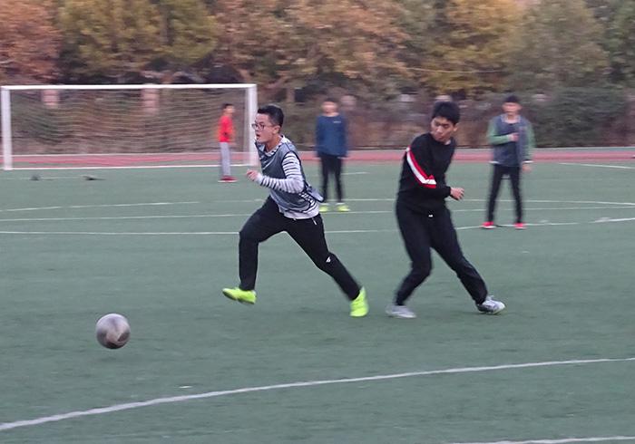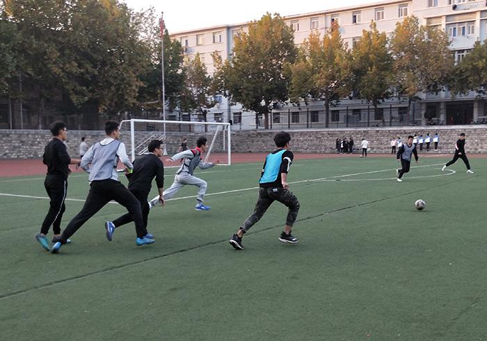 10月31日,机电系新生足球联赛持续进行。队员们在赛场上挥洒汗水