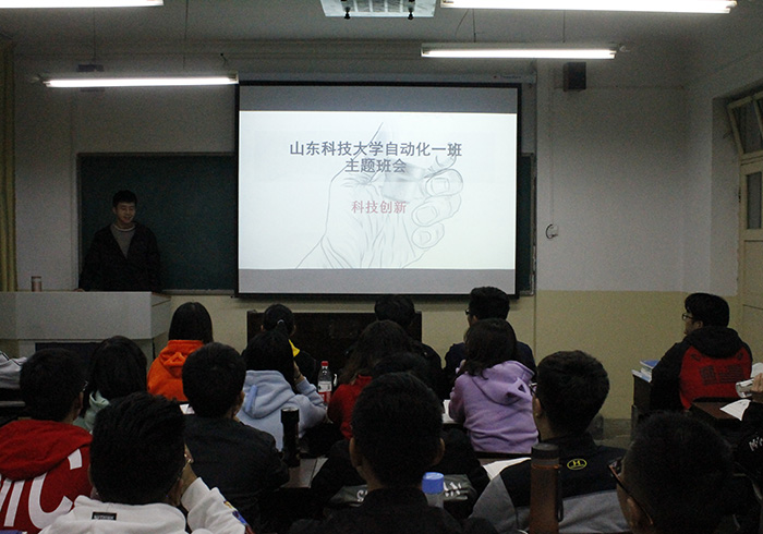 10月29日,自动化18-1在3#203召开科技创新主题班会,科技委员张文龙主讲,自动化18-1全体成员参加。