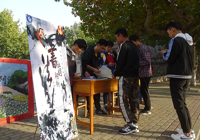 10月24日下午,机电系书画社在林荫道收集第三届全国书法、硬笔书法网络大赛作品。