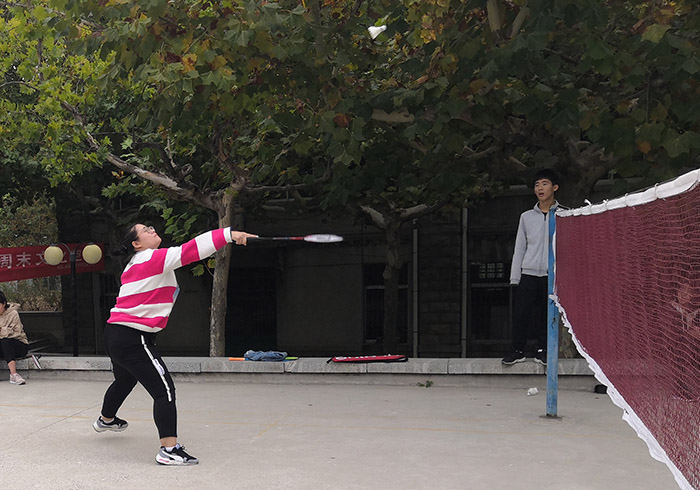 10月21日,机电系女生在小篮球场参加校区新生羽毛球女子组比赛。
