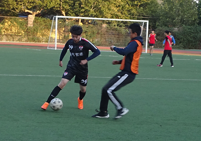 校区新生足球比赛中,机电系2018级智控专业队和资土系2018级测绘专业队在东校足球场展开比赛。