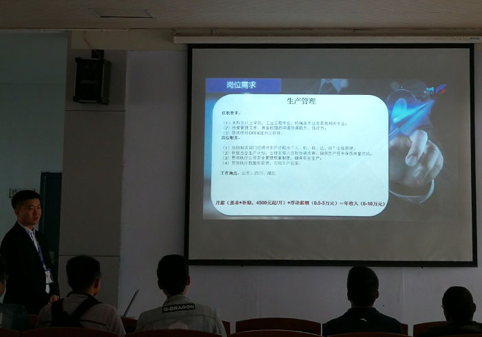 10月16日上午,四川弈新实业有限公司来机电工程系进行专场招聘,公司招聘人员一行两人在就业指导中心进行企业宣讲,机电系20余名2019届毕业生参加此次招聘会。