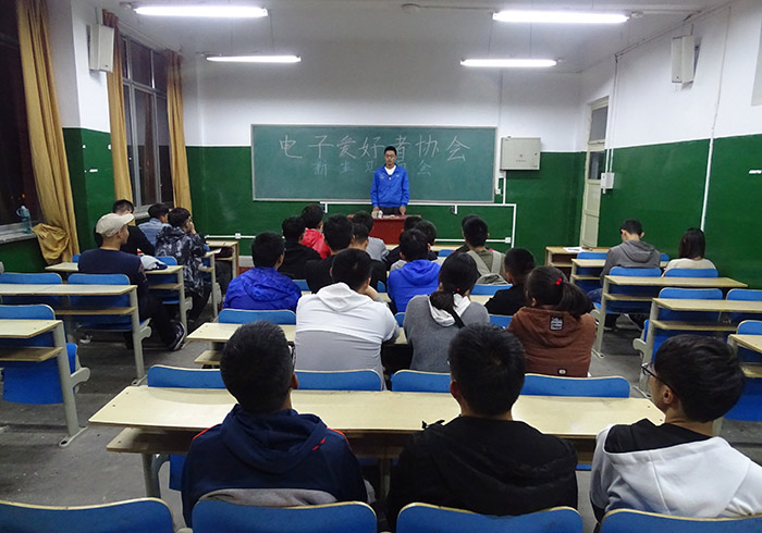 10月11日晚,机电系电子爱好者协会在2#403召开2018级新生见面会,会长朱文茂主持会议。