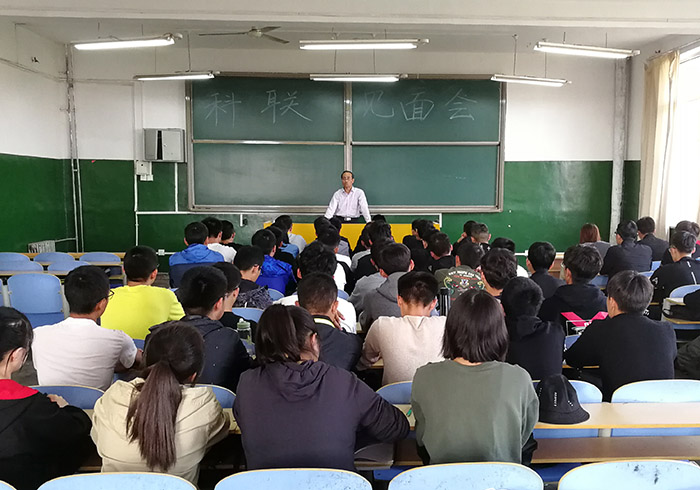 9月26日,机电系大学生科技联合会在2#401举办师生见面会,系团总支书记谢清勇及科联全体成员参加见面会。