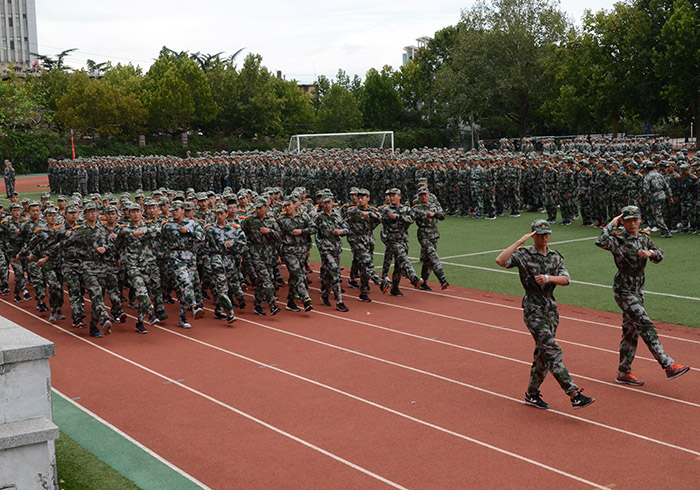 机电系八个方队和资土系七个方队进行军训分列式,各军训表演方队做汇报表演。军训团团长鲍教顺宣读优秀连队、文明宿舍、优秀指导员和优秀教官名单。机电系机制18-1李慎龙代表2018级全体