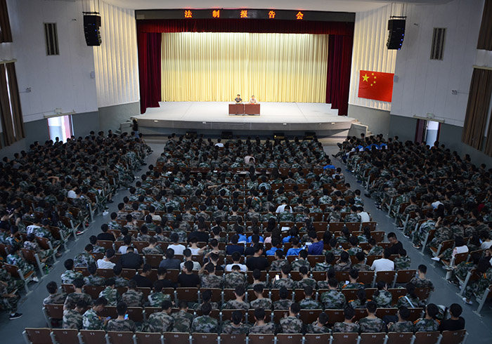 9月22日,机电系2018级新生在礼堂参加法制报告会,泰安市中级人民法院未成年人案件综合审判庭副庭长、四级高级法官范红艳主讲。