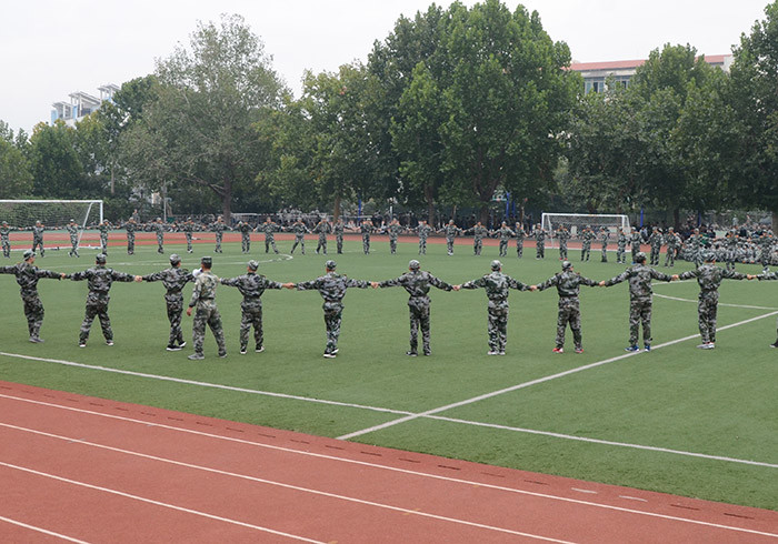 手牵手把快乐分享给大家,军训中的友情是最宝贵的财富。