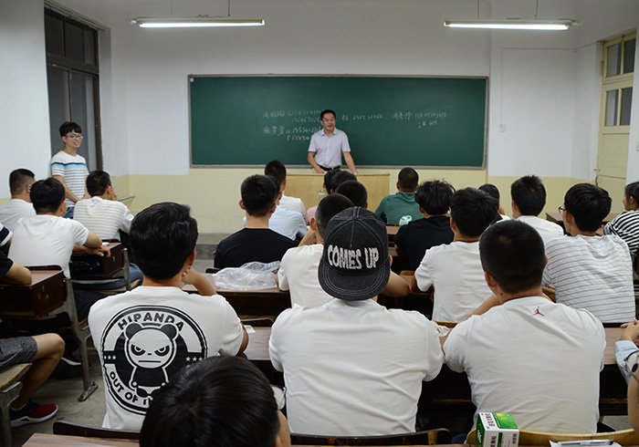 9月8日晚,机电系团总支周立志为18级机制、电自动化及机械电子专业5个班级224名新生开大学第一次班会。