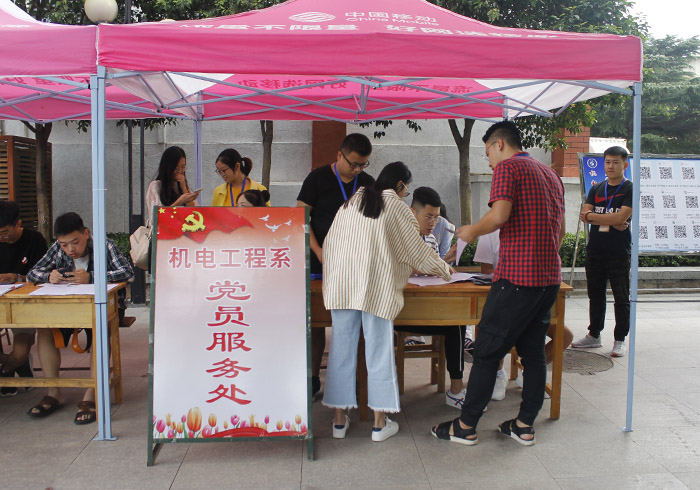 9月8日,机电系党员在东校园进行迎接新生工作。