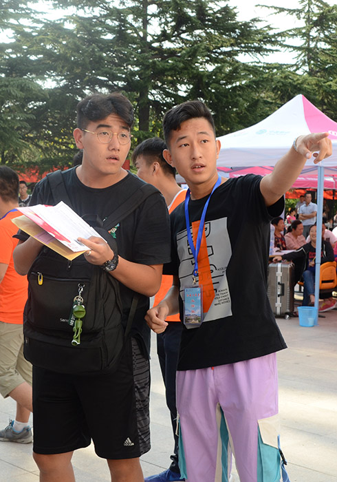 系学生会在南门设立机电系新生报到咨询处,学生会引导人员帮助新生搬运行李,引领新生到文化广场办理入学手续。助理辅导员给新生发放报到手续流程表,各专业引导人员带领新生完成交纳费用、核实身份信息、户口迁移手续办理等六项报到项目。记者采访到刚走完报到流程的大一新生牟菁说:“正是有了学长学姐的引导,我才能在最短的时间走完报到流程。燥热的天气并没有削减他们的热情,很感谢学长学姐的帮助。”(文/图: 曹浩浩 孙传斌)