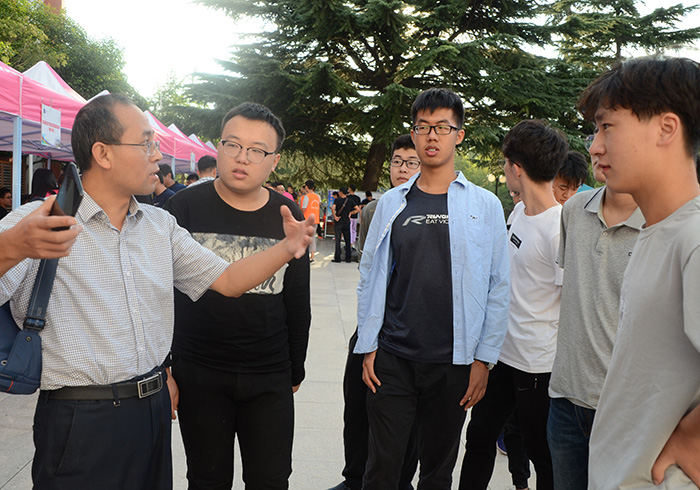 9月8日,2018级新生来到校园报到,机电系各年级的老生活跃穿梭在校园中,为迎新积极贡献自己的力量。