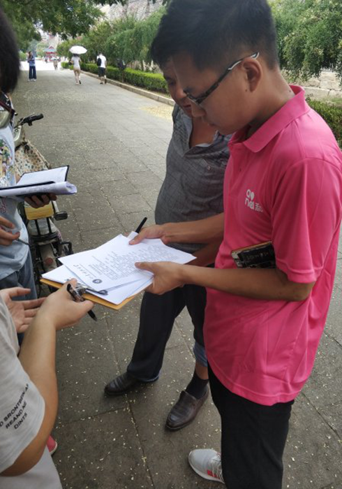 上午与指导老师沟通后,全体队员对近日的工作做了总结与反思。下午,全体队员与工作人员在岱东社区通过网络公众号、泰山社区APP、掌上泰山区APP展开对文明创城的宣传工作,同时通过公众号答题、网上建议在线收集等方式开展互联网+文明创城调研工作。结束了一天的工作后,团队收集了全国各地创城的资料,比拟制定了接下来的工作计划。(文: 王志远 图: 张轶强 许晨成)