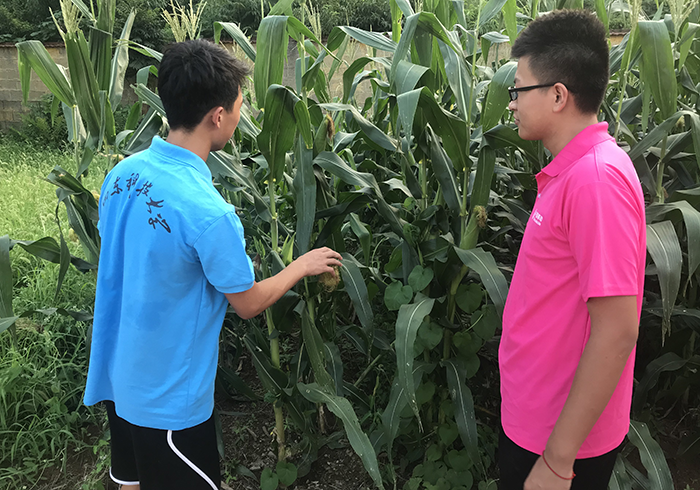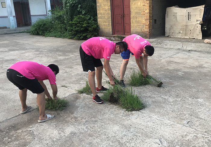 团队队员与临沂市沂水县诸葛镇大圈村村民对村庄的主要街道以及居委会展开了清扫,队员将街道的垃圾进行分类回收、清理,对居委会的杂草进行清除。中午,队员们使用借来的工具和食材,互相协作,自己做了午饭。下午,在村民的带领下,队员们来到了村里的玉米田,向村民学习了玉米种植的相关知识并了解了玉米最近的长势,同时队员们加入到了村民的除虫工作中,进一步体验到了农民工作的辛苦。