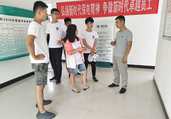 7月30日,机电系“青年临沂行”实践团队来到卞桥镇国家电网,向优秀电工学习基本知识,提升专业技能。