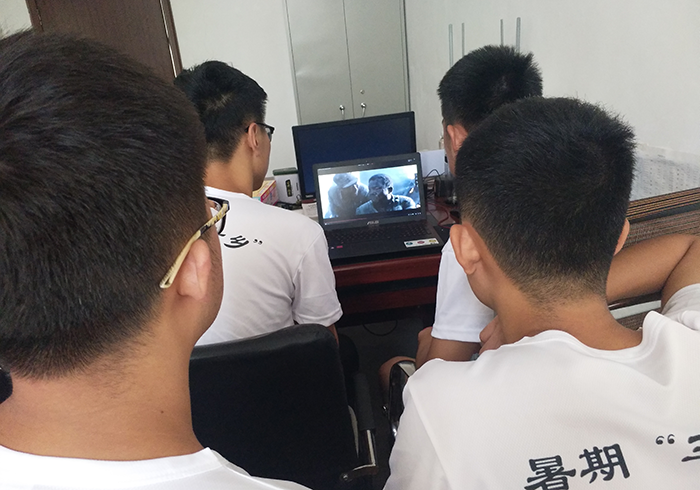 7月28日,机电系“青年临沂行”实践团队在卞桥镇镇政府内观看电影《沂蒙红嫂》,学习沂蒙精神。