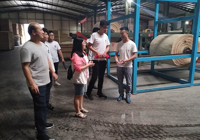 7月26日,机电系“青年临沂行”实践团队在卞桥镇副镇长于志远的带领下参观锦程木业有限公司。