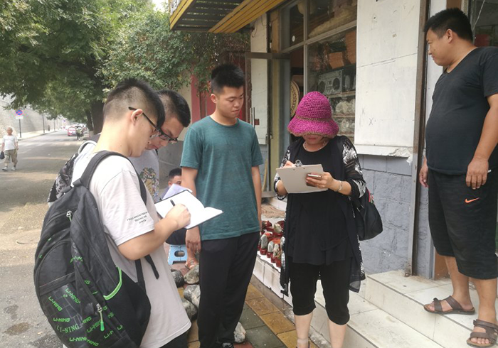 7月21日,机电系筑梦文明实践队“三下乡”社会实践活动进入了第三天的工作,经过指导老师指导,上午筑梦文明实践队团队成员召开总结会议,对前段时间的工作和调查问卷做了完善与改进。下午在东岳大街,青年路等人流量大的街道,通过填写纸质调查问卷和微信调查问卷等方式,调查了泰城居民认为创城阶段存在的问题并询问了居民的解决建议。